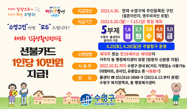 | 지원대상 | 모든 부산 수영구민 |